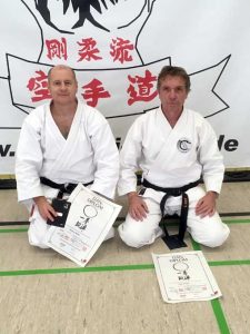 Peter Krüger und Roland Spohn konnten nach diesem Applaus und bestandener Prüfung das begehrte DAN Diplom entgegen nehmen. Die gezeigte Leistung der beiden wurde seitens der Prüfer dabei noch einmal lobend erwähnt, verknüpft jedoch mit dem Hinweis der Pflichten die eine solche Graduierung mit sich bringt: Vorbildfunktion, Weitergeben des Erlernten, kein Nachlassen im eigenen Bemühen der Verbesserung. Peter und Roland sind sich einig, diese Pflichten erfüllen zu wollen, da sie ohne die Unterstützung vieler einzelner Menschen niemals dieses hohe Karateziel erreicht hätten.