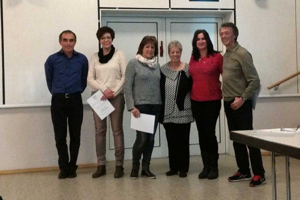 Die Präsidentin des Turngau Neckar-Enz, Bärbel Vorrink, überreichte mit sehr lobenden Worten die Gauehrennadel in Silber des Schwäbischen Turnerbundes an Petra Dörr, Manuela Kirschner, Sabine Kreth, Yvonne Schembera, Susanne Schwenk und Helke Wild.